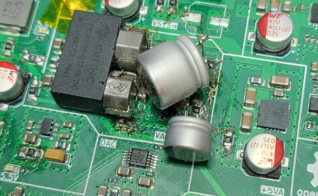 The good news is that there were no major or obvious issues with the PCB. All of the power supplies had 0Ω resistors on the input and output, which made it easy to verify each one separately before powering the whole board. All the power supplies worked, except for the high-pitched squealing of the +/-8V regulator (more on that below).