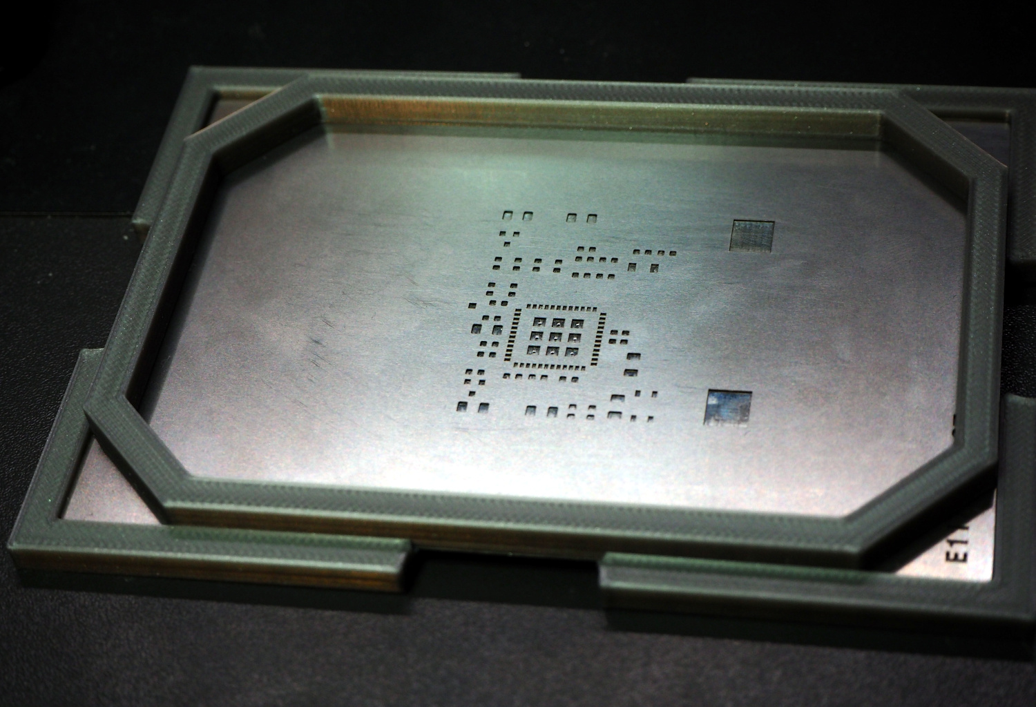 Stencilframer is a Python script which takes the KiCAD PCB or Gerber file (outline, Edge_Cuts layer) as an input and, using OpenSCAD in the background, produces STL/AMF mesh which can be sliced and 3D printed. It can also export PNG image or the actual OpenSCAD code used for the model (for further adjustments). Only dependencies for running it are Python and OpenSCAD